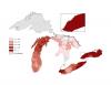 The cumulative stress map incorporates data for five invasive species stressors and one predictor of invasion. These stressors are a subset of those identified as important Great Lakes threats by a team of experts during a workshop in 2011. Other species identified, but for which basinwide spatial data are not currently available, included: