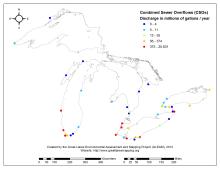 - We obtained data on CSO outfalls for US cities within 10 km of the Great Lakes from an EPA report.1